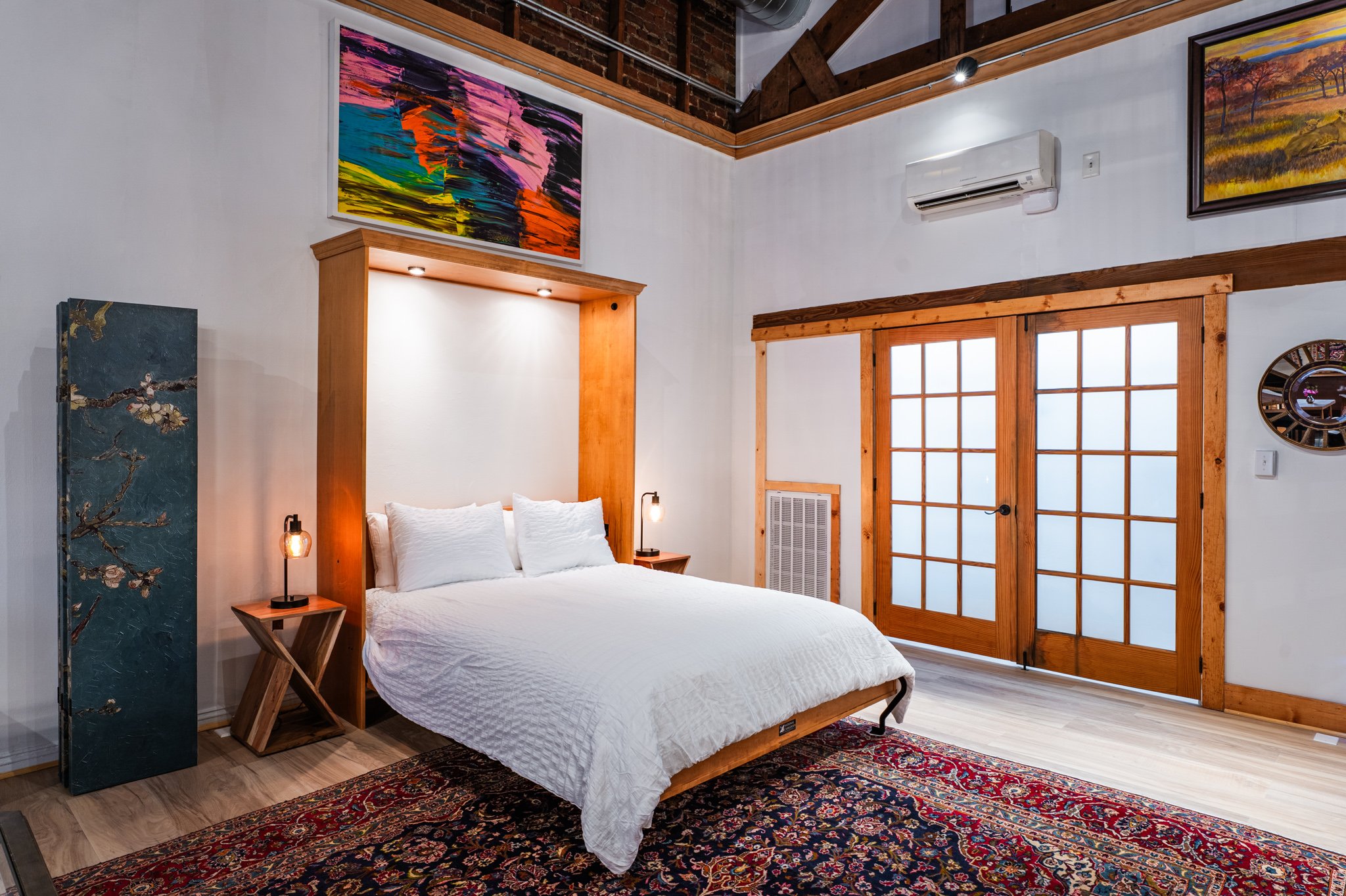 Traveling with friends or family? The Loft comfortably sleeps up to 6 guests, with flexible options that make group stays easy. On the main level, you’ll find a queen-size Murphy bed and a plush sleeper sofa—each designed for a restful night and a seamless stay.
